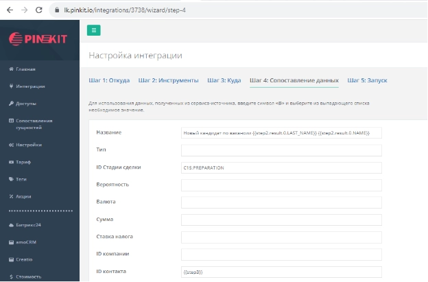 Узнайте, какие сервисы можно интегрировать с помощью Пиникт: https://lk.pinkit.io/tariffs
