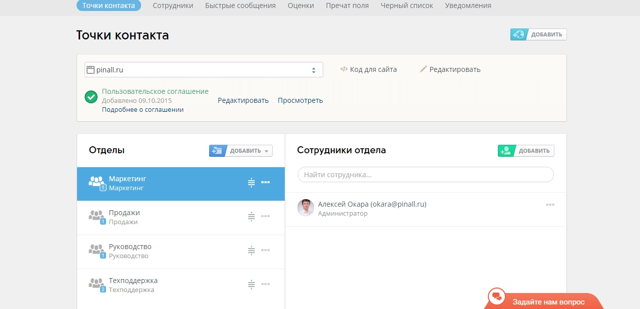 В LiveTex можно гибко настроить точки контакта для конкретного сайта или мобильного приложения, что в свою очередь значительно ускорит скорость ответа клиенту и позволит эффективно контролировать работу каждого канала и сотрудника. Эта полезная функциональность LiveTex позволяет распределять обращения клиентов по компетентным отделам: