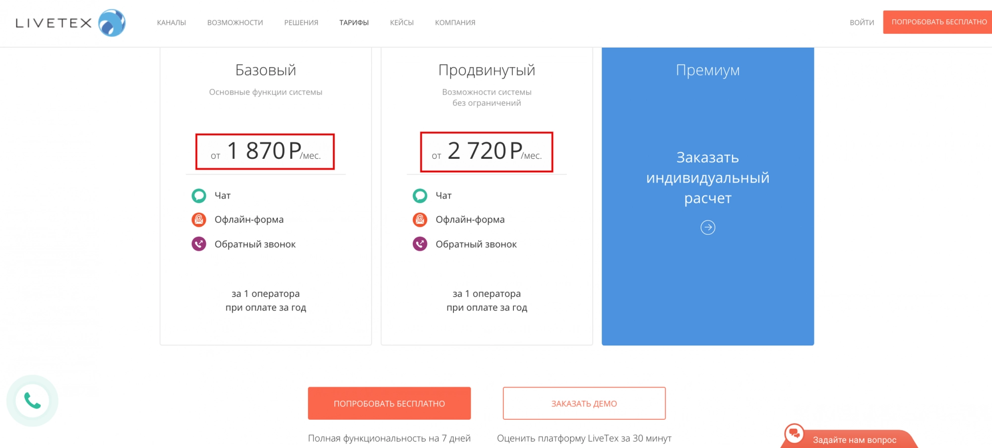 С тарифами на LiveTex можно ознакомиться на их официальном сайте. Есть 3 варианта: