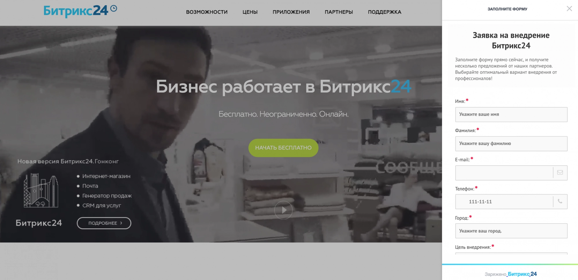 Рис. 10. CRM-форма виджета Битрикс24.