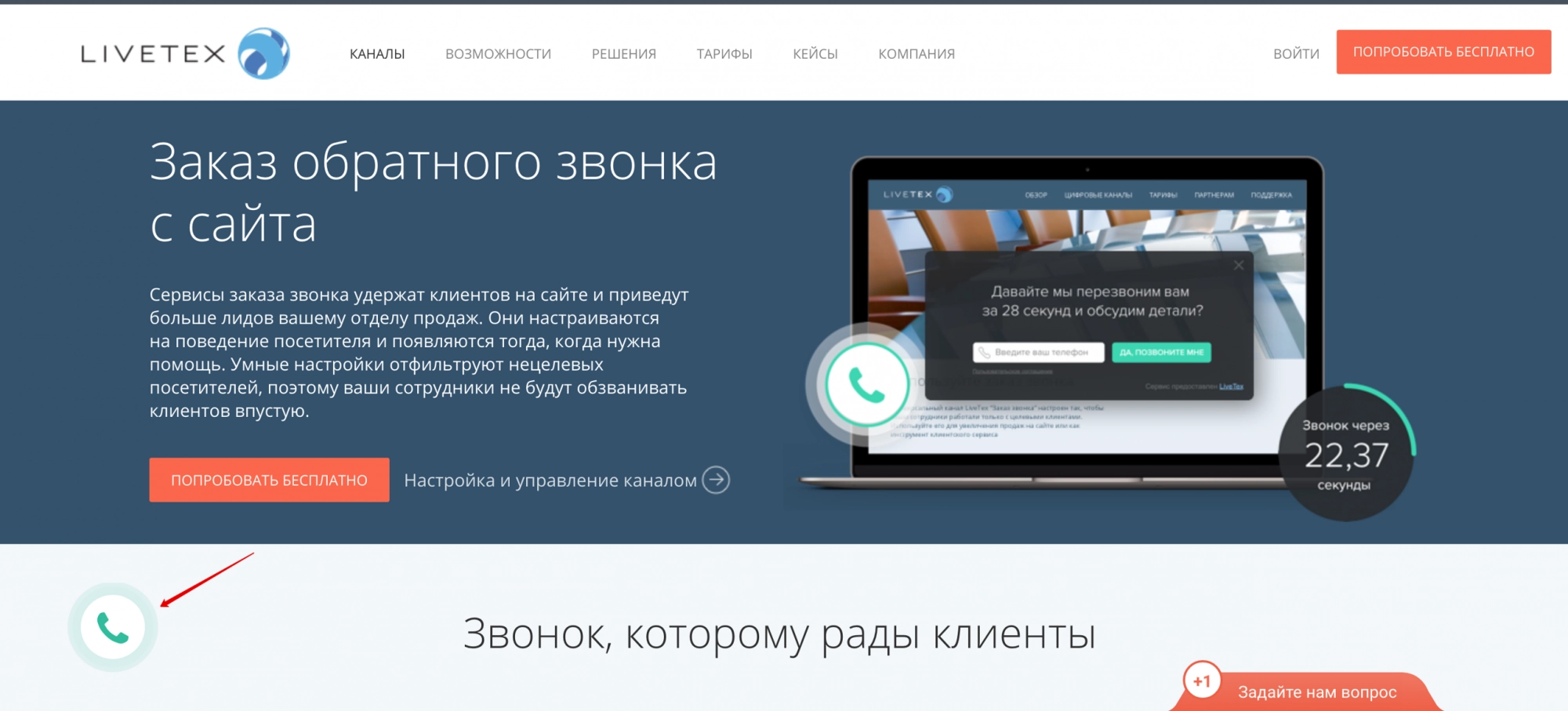 Заказ обратного звонка при помощи онлайн-консультанта LiveTex