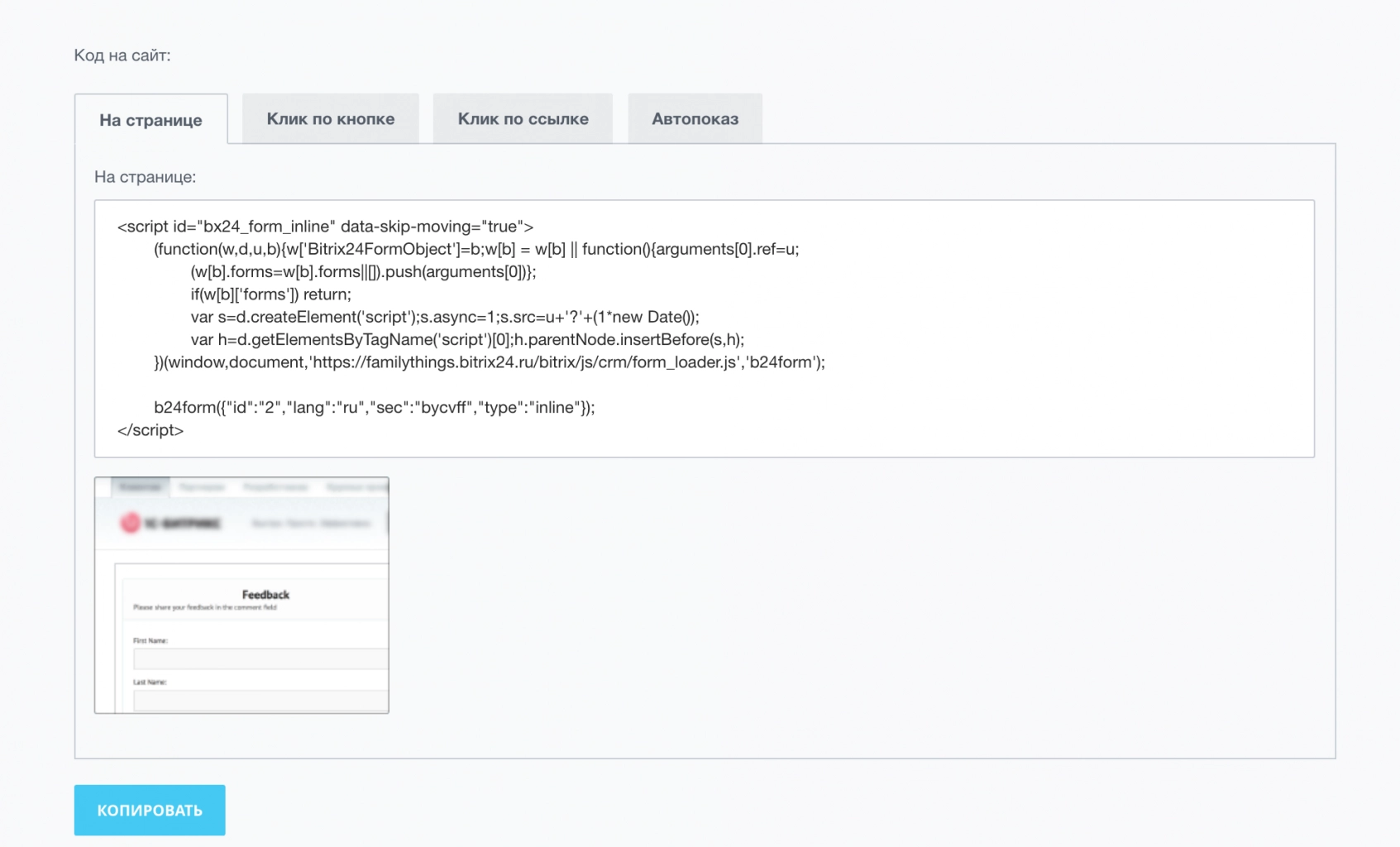Теперь более подробно разберем CRM-форму для отправки данных в виджете Битрикс24: