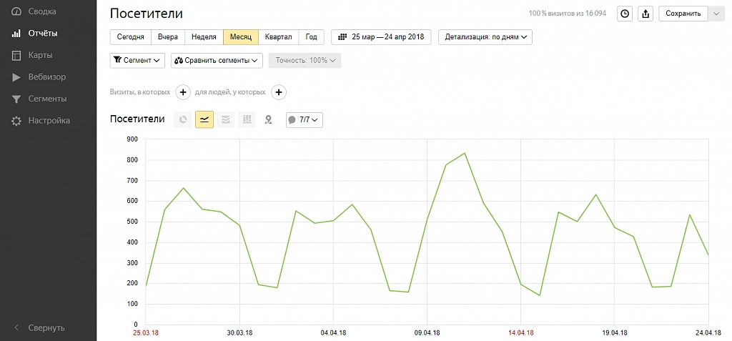 Рис. 27. Показатели посещаемости сайта Пинол.