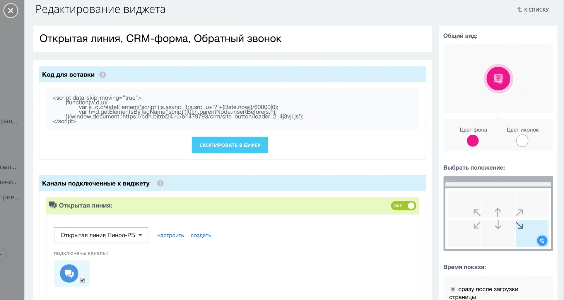 Рис. 2. Настройки виджета от Битрикс24.