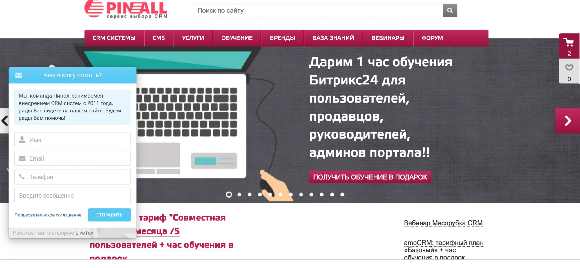 Оценить “вживую” эти 2 сервиса можно, например, на официальном веб-сайте Битрикс24 и на сайте Пинол.