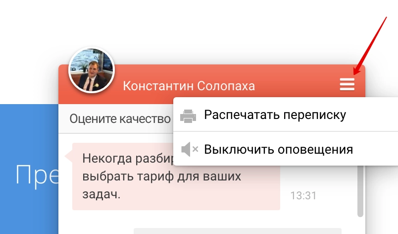 Дополнительным преимуществом чата LiveTex есть то, что клиент может отключить уведомления во время переписки или по окончании диалога распечатать переписку (в Битрикс24 такой возможности нет):