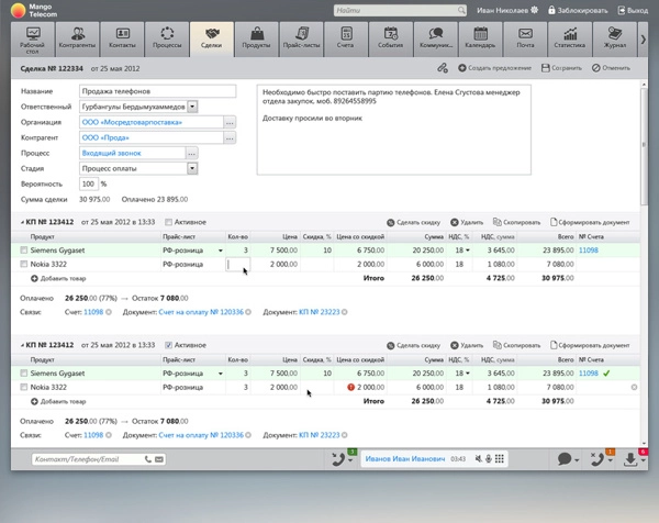 - Облачная CRM-система – CRM MANGO OFFICE - для учета клиентов, поддержки процессов продаж и обслуживания. Приложение интегрировано с облачной телефонией.