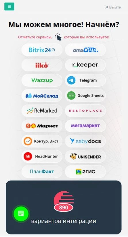 и готовых шаблонов интеграций решаемых болей с помощью Пинкит