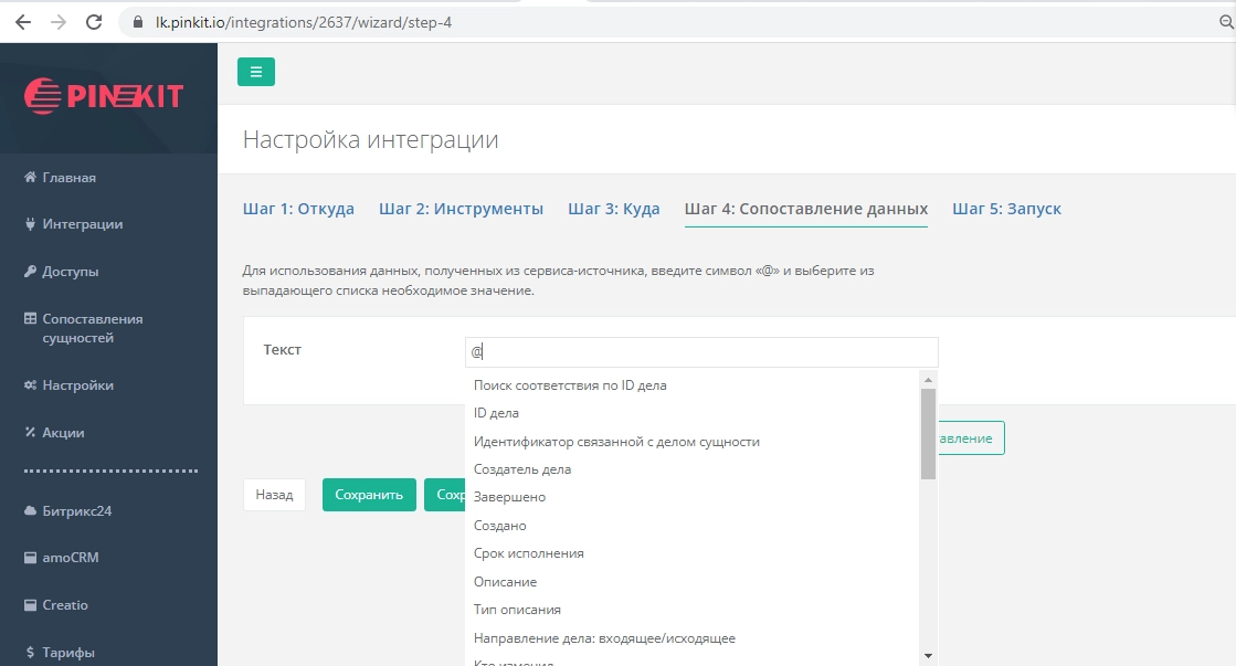 Шаг 4. Сопоставление данных