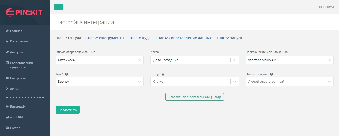 Откуда отправляем данные: выбираем Битрикс24