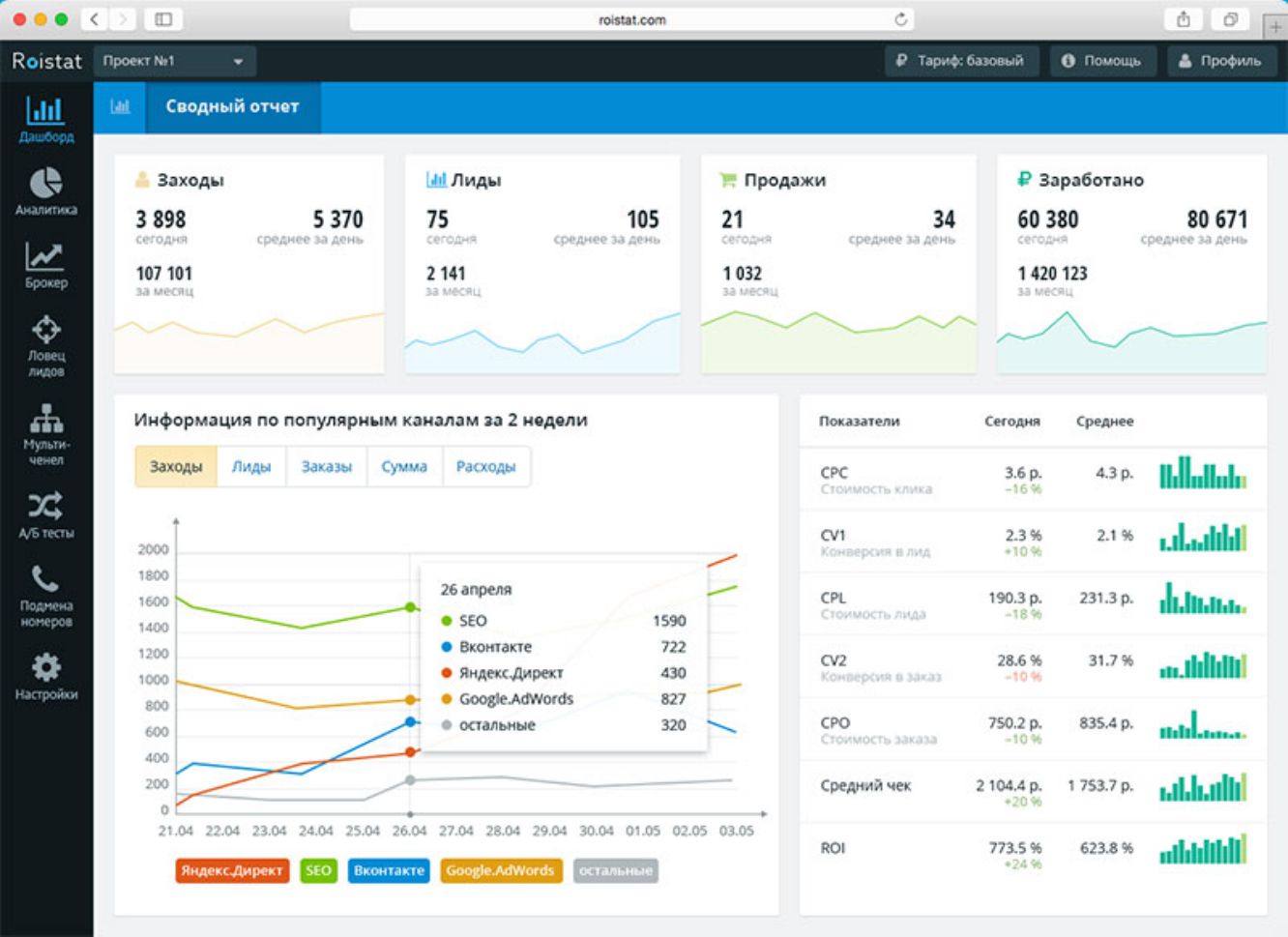 Протестируйте сервис Roistat с нашим промокодом на 10 000 рублей.