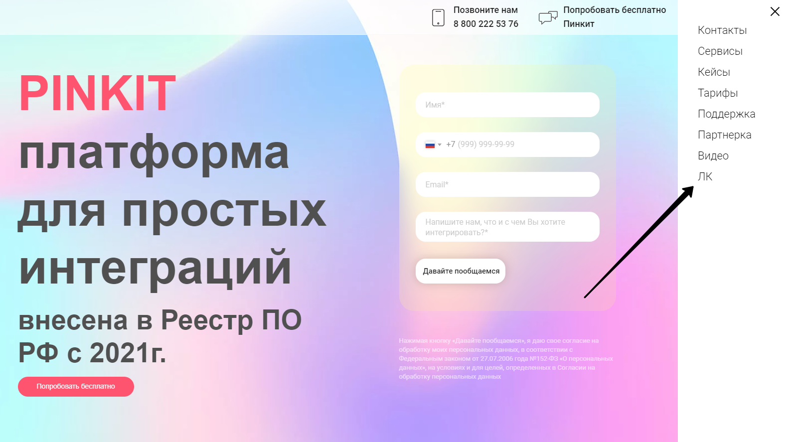 ЗАРЕГИСТРИРУЙТЕСЬ В ЛИЧНОМ КАБИНЕТЕ ПИНКИТ, ЧТОБЫ настроить интеграцию: