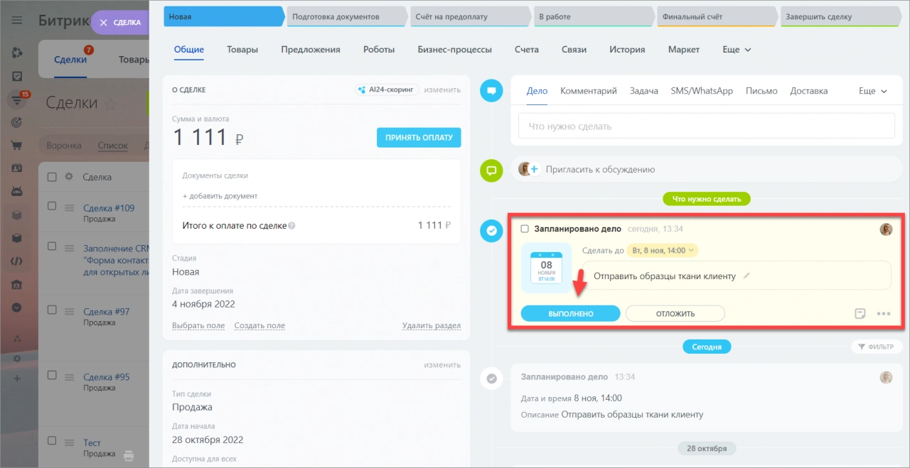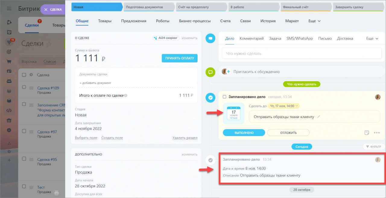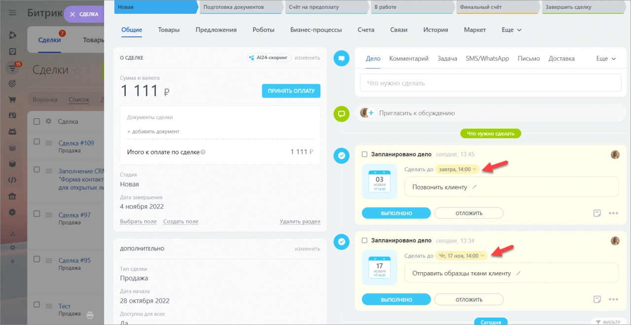 Менеджеры по работе с клиентами ежедневно обзванивают базу контактов и результат созвона описывают в комментарии в Живой ленте Лида, Сделки, Контакта, Компании.