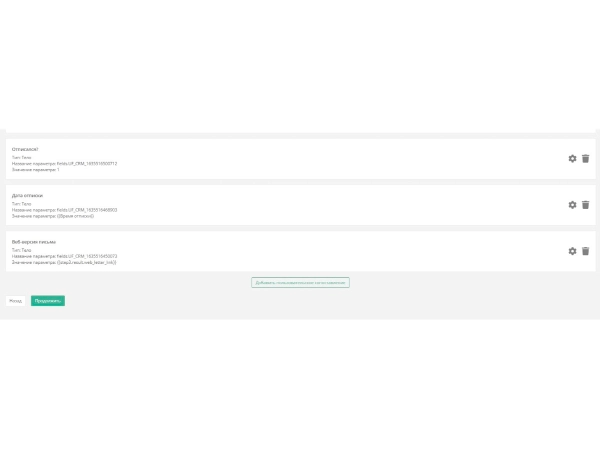 Дополнительно вы можете запустить бизнес-процесс на изменение контакта, чтобы передавать эти данные в ленту карточки контакта или чат с помощью нашего активити "Отправить сообщение в персональный чат" из "Базы бизнес-процессов Пинол" на платформе Пинкит. Это позволит вам максимально оперативно строить аналитику и вносить изменения в стратегию рассылок.