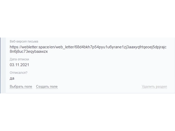 Интеграция дает возможность видеть в карточке контакта Битрикс24 веб-версию письма, по прочтению которого клиент отписался от рассылки. Вам не придется каждый раз заходить в личный кабинет Unisender, чтобы проверить отписки — информация всегда будет под рукой в CRM. Это дает возможность анализировать и корректировать стратегию рассылок не выходя из Битрикс24.