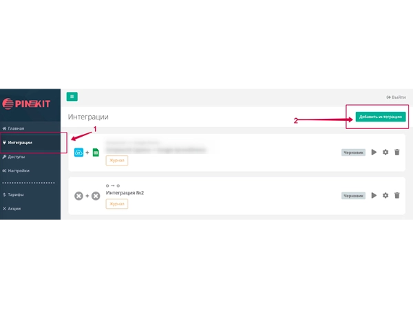 Выгрузка данных происходит автоматически после настройки интеграции в личном кабинете Пинкит. Для этого нужно: