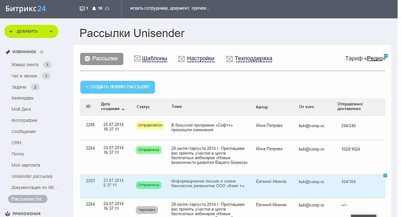 - создание email-рассылки с помощью сервиса Unisender из CRM Битрикс24.