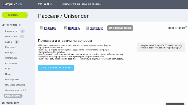 И сейчас у Ваc есть возможность установить БЕСПЛАТНОЕ приложение UniSender по созданию контактной базы и e-mail рассылки с открытием писем от 50% на Ваш Битрикс24. Получите бонус на свой счет в размере 30$ или 50$ (при пополнении счета на 10$) просто установив приложение и начните получать прибыль с помощью рассылок прямо сейчас! Более подробная информация по функционалу и возможностям интегрированного приложения UniSender опубликована на сайте компании Пинол, а если возникли вопросы, мы всегда готовы обсудить их на нашем Форуме по интеграциям с CRM.