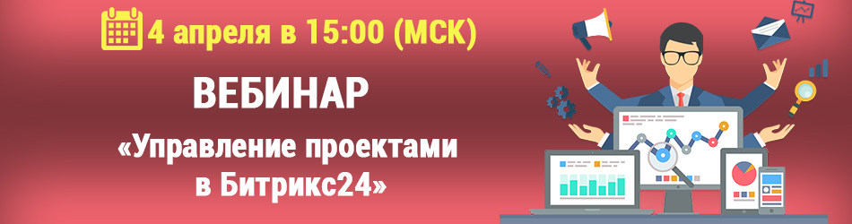 8 октября в 15:00 (по МСК) приглашаем Вас принять участие в бесплатном вебинаре "Удаленное управление проектам в Битрикс24", на котором мы покажем, как в период карантина с помощью проектного управления в Битрикс24 правильно организовать удаленный рабочий день.