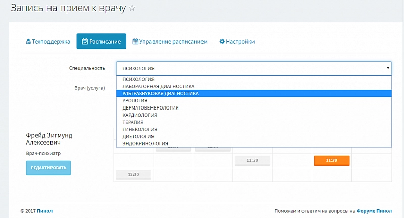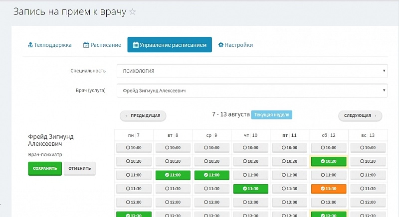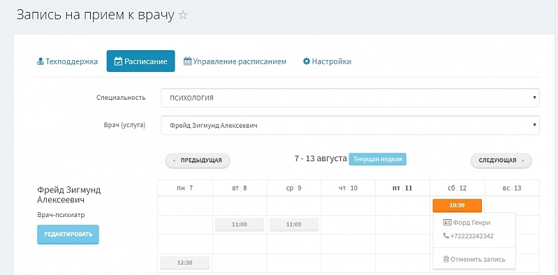 - Интерактивня iCRM-форма для записи на прием на сайте пациентом.