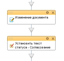 Для удобства пользователя выведем название бизнес-процесса и статус обработки, для этого возьмем блок "Изменение документа" и "Установить текст статуса":