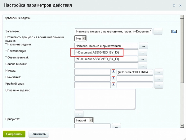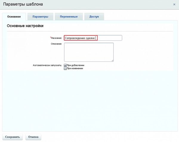 Нажимаем "Применить" и "Сохранить". Бизнес-процесс готов. Теперь нужно настроить события, когда будет запускаться