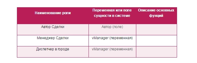 Таблица 2. Роли пользователей в имплементированном бизнес-процессе (фрагмент).