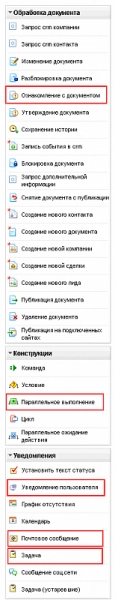 Для разработки бизнес-процесса нам потребуются следующие блоки: